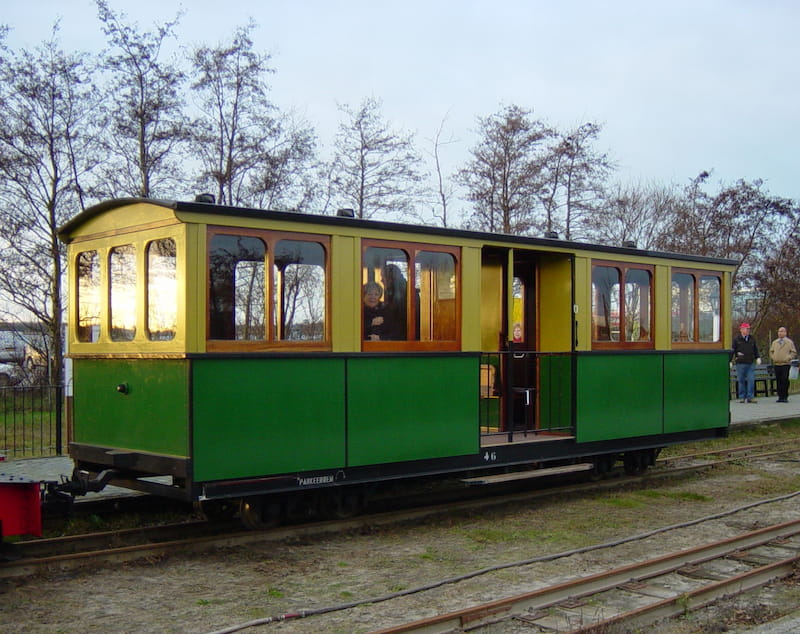 Dit gesloten rijtuig heeft een middenbalkon met aan weerszijden een coupé. In een van de coupé’s zijn de banken zo geplaatst dat er een rolstoel tussen kan staan. Het rijtuig heeft inzetramen die op warme dagen kunnen worden uitgenomen.